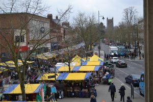 The Wednesday and Saturday markets have had many changes of character and format over the years. Until 2021 stalls, with awnings in the city’s yellow and blue livery, were erected for stallholders by St Albans City and District Council, the body that runs the market.